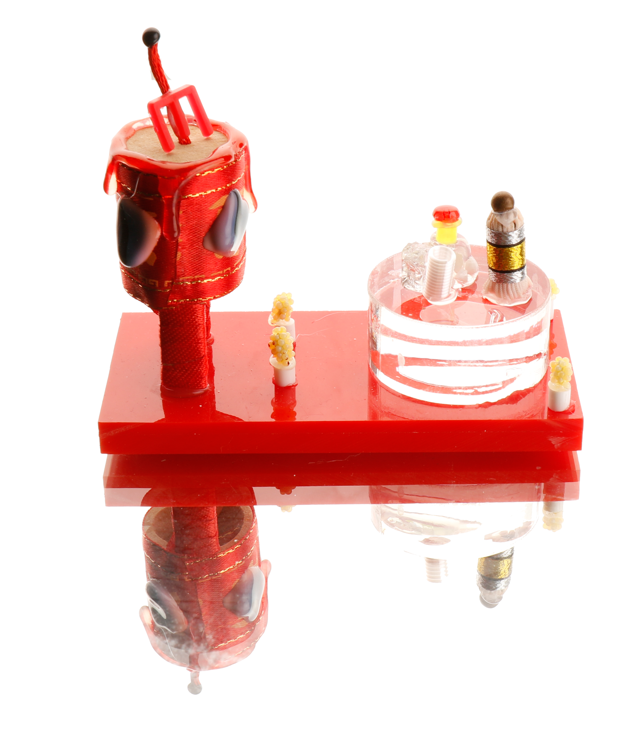 Die geheimnisvolle Welt der Miniaturen wird performativ erfahrbar: Am 28. März von 17 bis 19 Uhr wählen die Besuchenden im Rahmen von Drinks & Divination einzelne Objekte aus der Werkserie Miniaturen. Diese dienen U5 als Ausgangspunkt für eine persönliche Zukunftslesung. Parallel dazu wird der Signature-Drink von U5, Dengue Sling, von den Kunstschaffenden selbst gemixt und serviert. Objekte, Küche und Getränk erweitern die Interaktion zwischen Gegenständen, Raum und Besuchenden – ein Moment, in dem Materialität, Funktion und Fantasie verschmelzen.